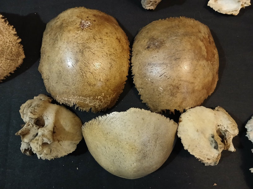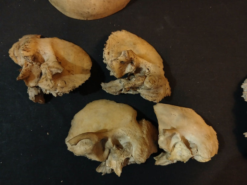 Most of the skull bones don't seem to match but may have been part of a teaching group. As you can see from the photos, these are old bones and have a lovely deep colour and patina. Some of the bones are even quite polished from many years of handling during studies.