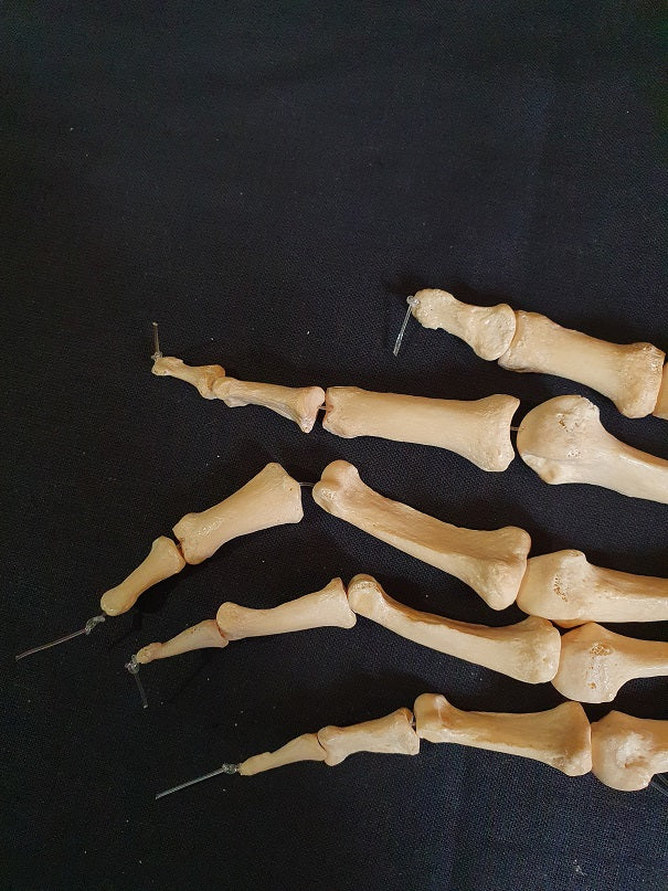 Real human hand bones, medical specimen.