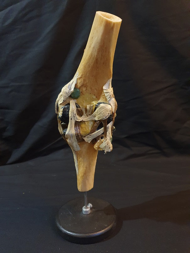 This example was part of a collection that came from a medical college. It is still in good condition as can be seen from the photos. The model is a knee joint showing the articulation of the femur and tibia. The ligaments and tendons have been re-created to show the articulation.